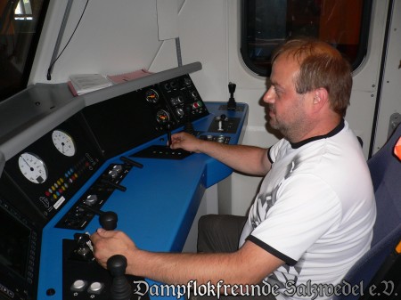 Anlässlich der Hansetage war am 08.06.2008 war die Diesellok OHE 270081 im Lokschuppen zu Gast. Die nachfolgenden Bilder zeigen die Lok auf der Drehscheibe und einige Aufnahmen des Innenlebens.