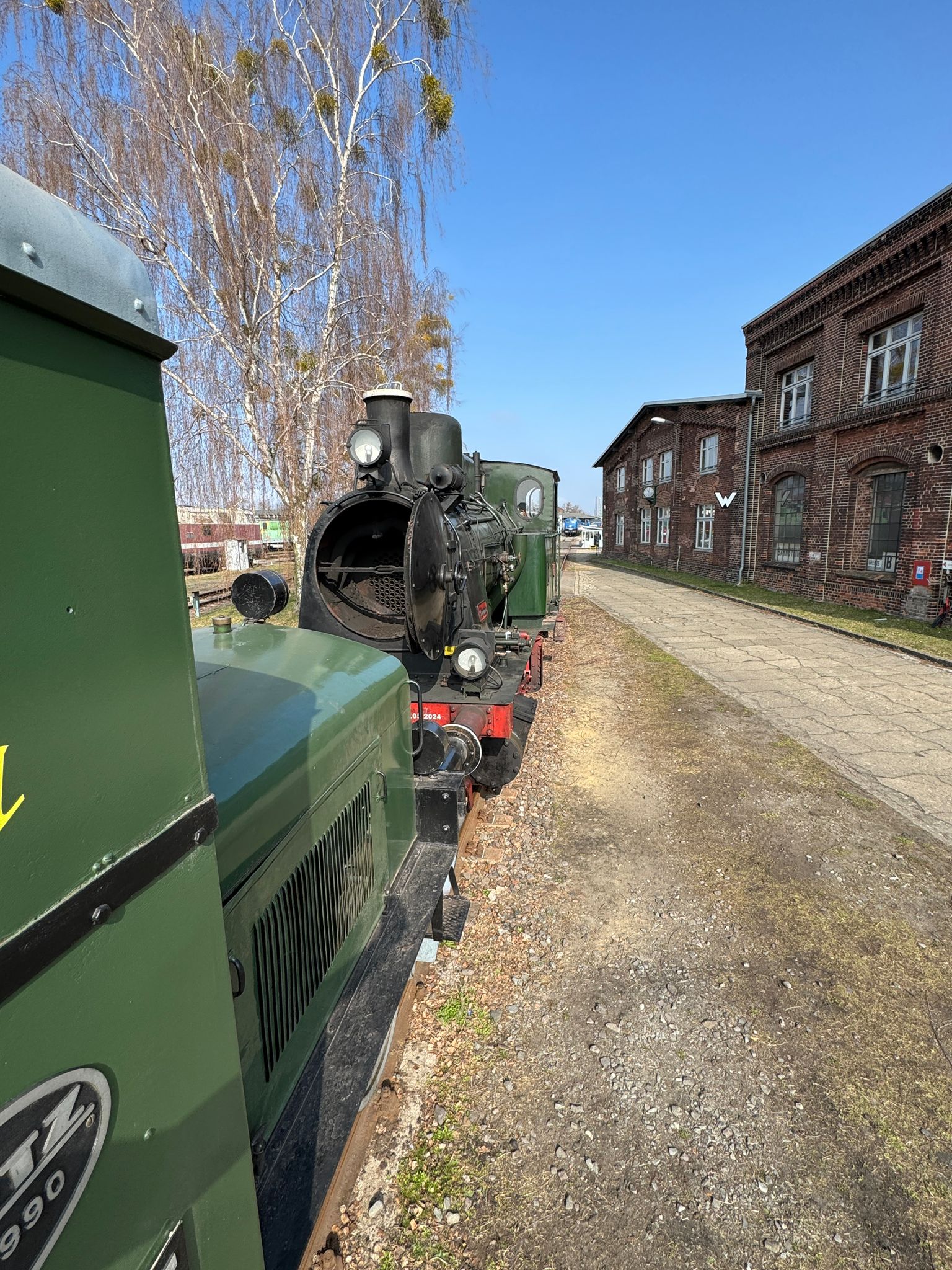 Eines der dort angeschlossenen Gleise ist ein neues Rangiergleis, das ungefähr bis zum Beginn des Bahnsteigs am Bahnhofsgebäude führt. Es soll Rangierbewegungen im Bahnbetriebswerk erleichtern. Dieses Gleis werden wir wahrscheinlich auch im Rahmen unserer Rundfahrten bei Dampfveranstaltungen ab 2026 benutzen.